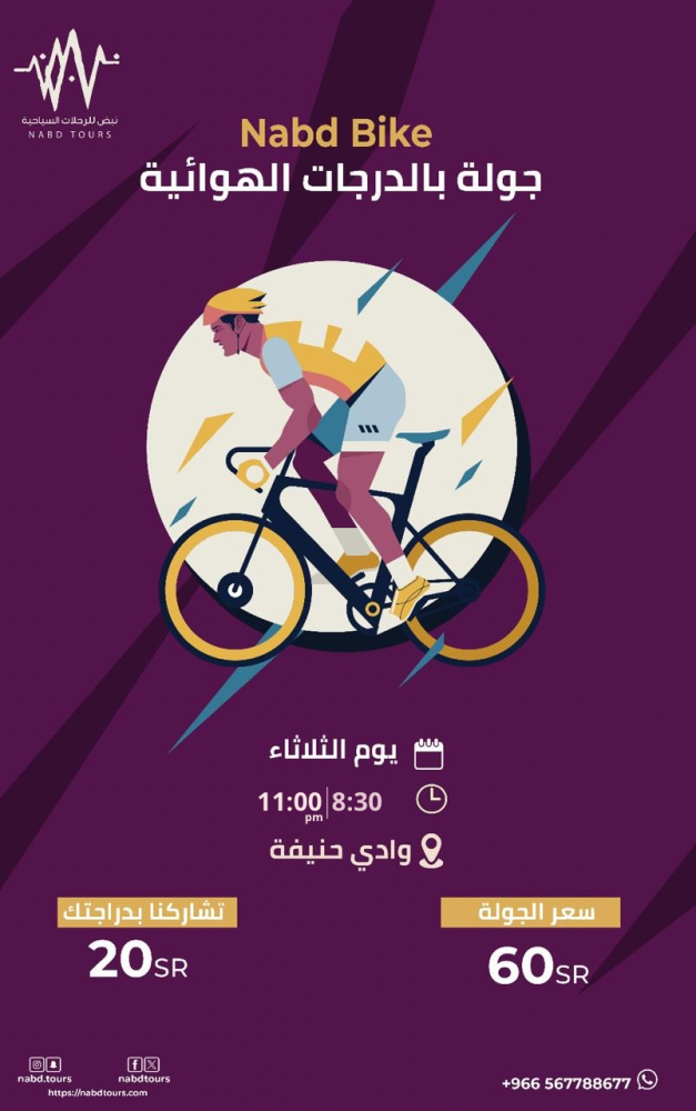 انضم معنا في جولة دراجات ساحرة داخل مسار وادي حنيفة… ساعتين من المتعة والحركة والهواء العليل!