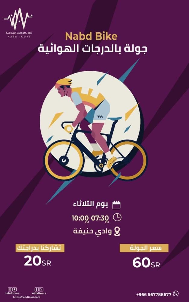 لننطلق و تجديد لياقتنا 🚴♂️ في جولة ممتعه في مسار وادي حنيفة للدراجات مدتها ساعتين يفصلها بريك بجلسة جميلة لتناول المشروبات الباردة والساخنة وسناكات 🍫 ثم نختتم جولتنا والعودة لنقطة البداية 😎